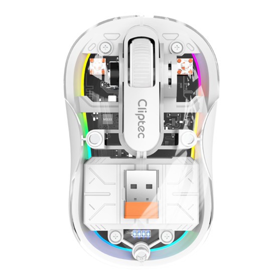 Cliptec Rzs636 Dual Mode 24000Dpi Transparent Rechargeable Rgb Silent Wireless Mouse – White