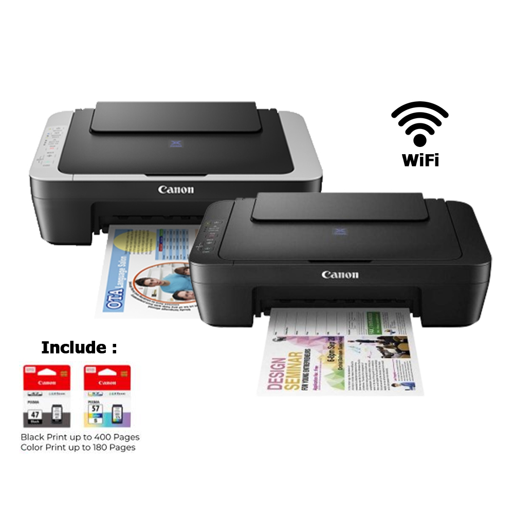 Canon Pixma Inkjet E470 Green White / Black&Grey AIO Wireless Printer
