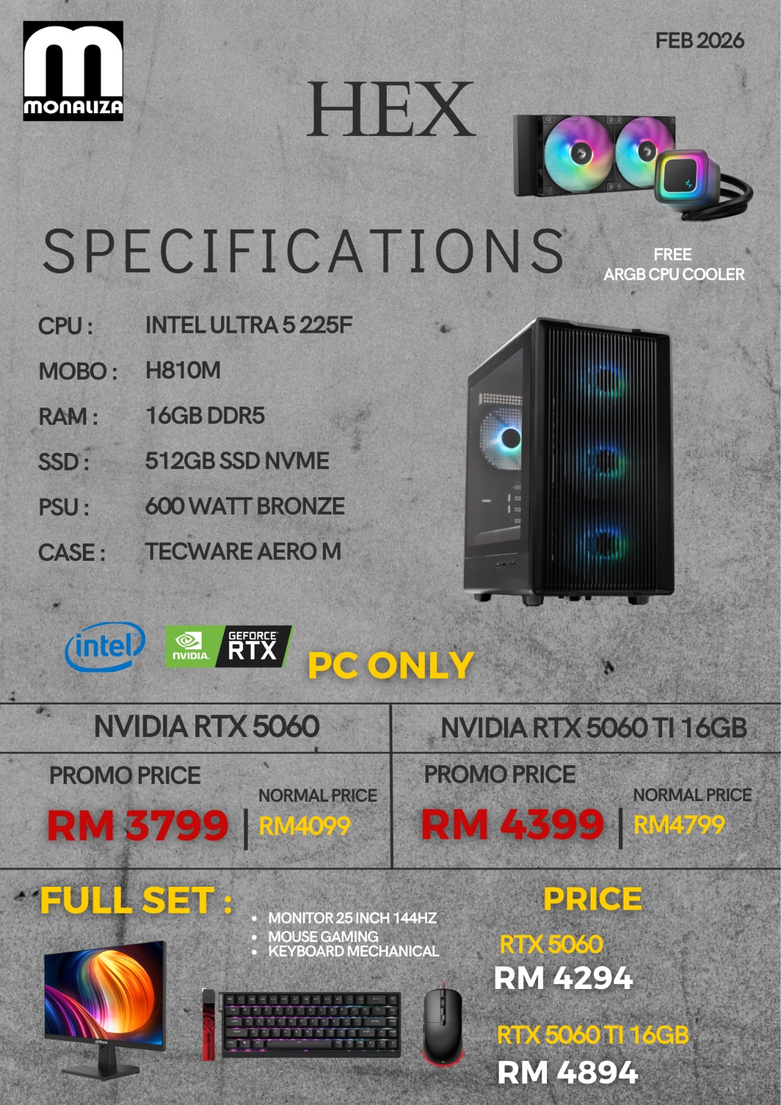 - This package includes the PC and essential gaming peripherals: