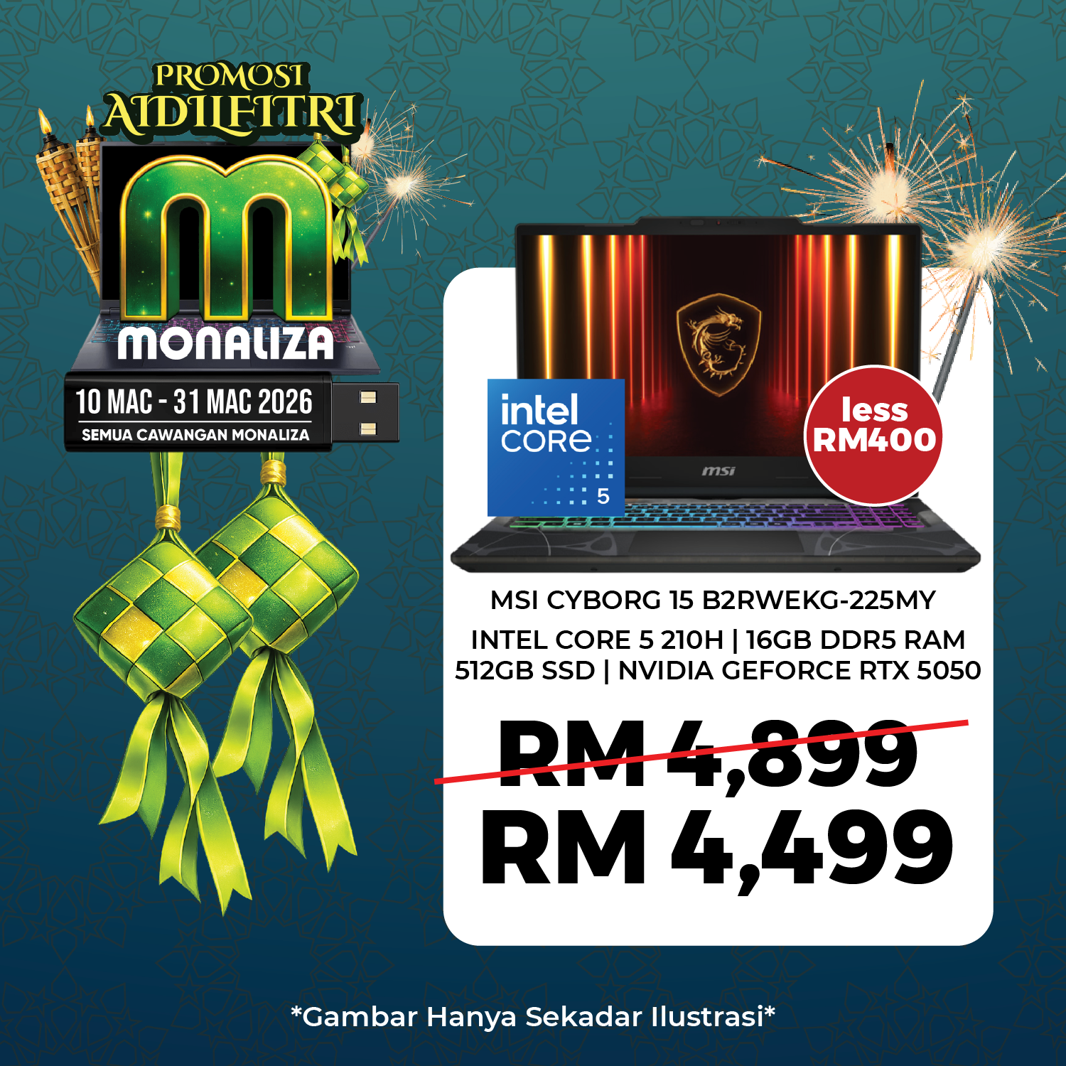 Powered by the Intel® Core™ 5 210H processor with 8 cores (4 Performance + 4 Efficient cores) and 12 threads, delivering strong performance for gaming, multitasking, and productivity.